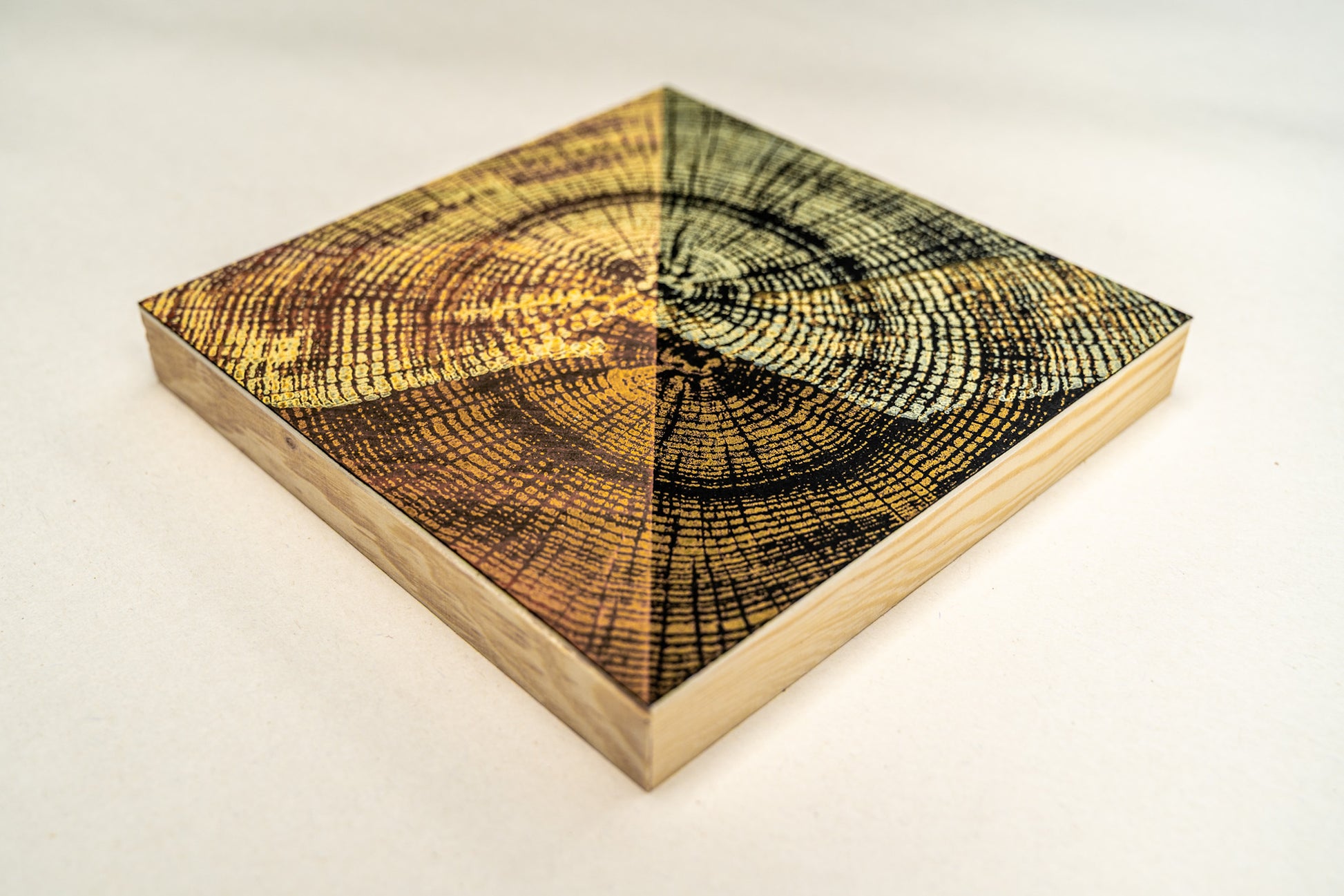 Each piece in the Summer Series is a one-of-a-kind original monoprint, hand printed from the cross-section of downed trees. These works repurpose the natural imagery of tree rings into layered abstract compositions, merging traditional printmaking with contemporary design. Inspired by the Bauhaus art movement and folk art traditions, this collection celebrates color, form, and the enduring beauty found in nature’s patterns.