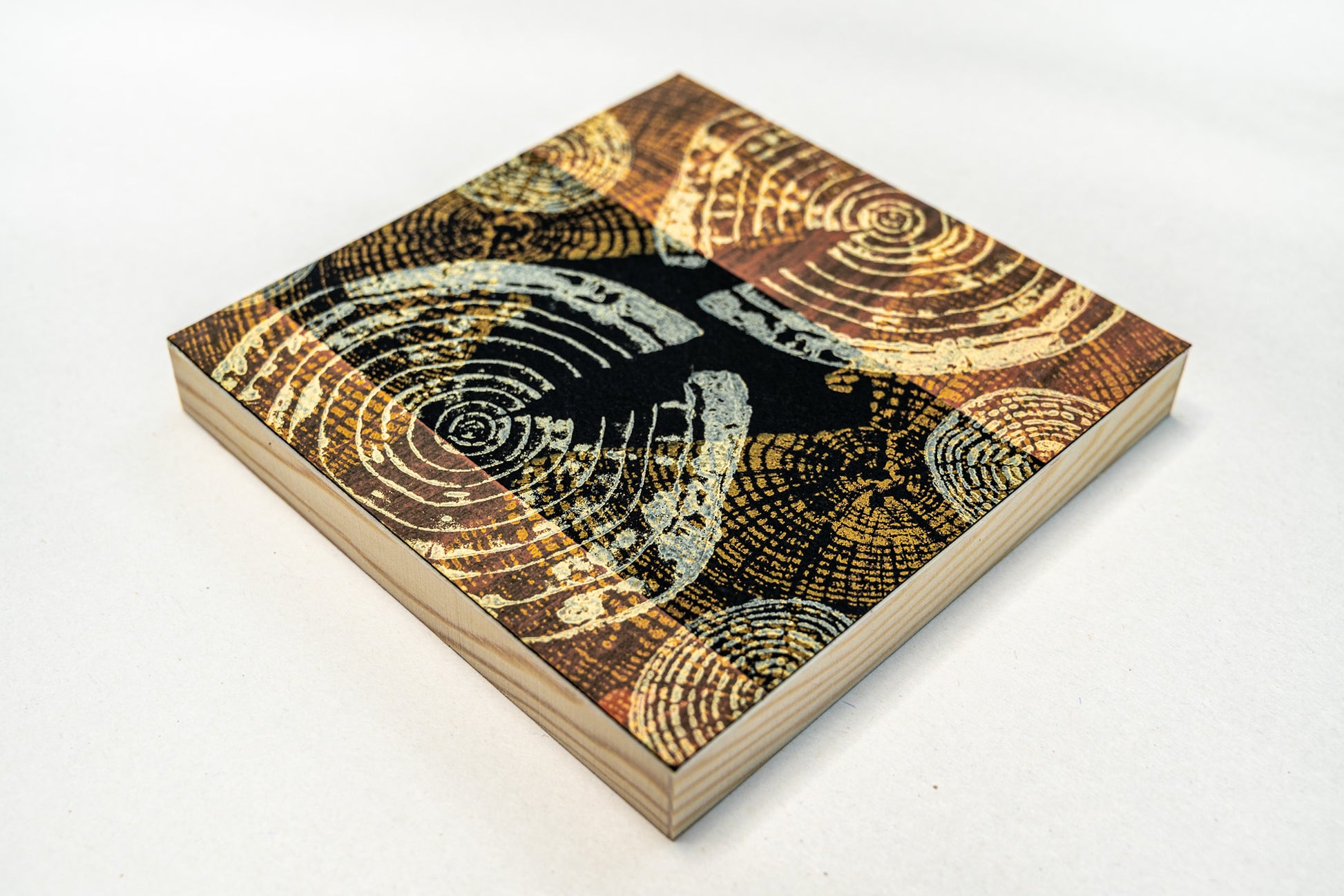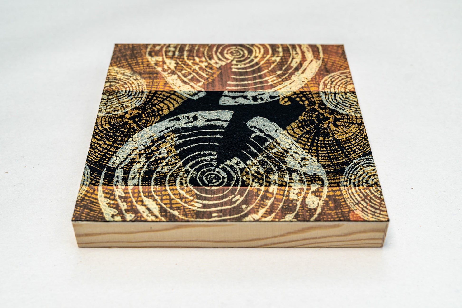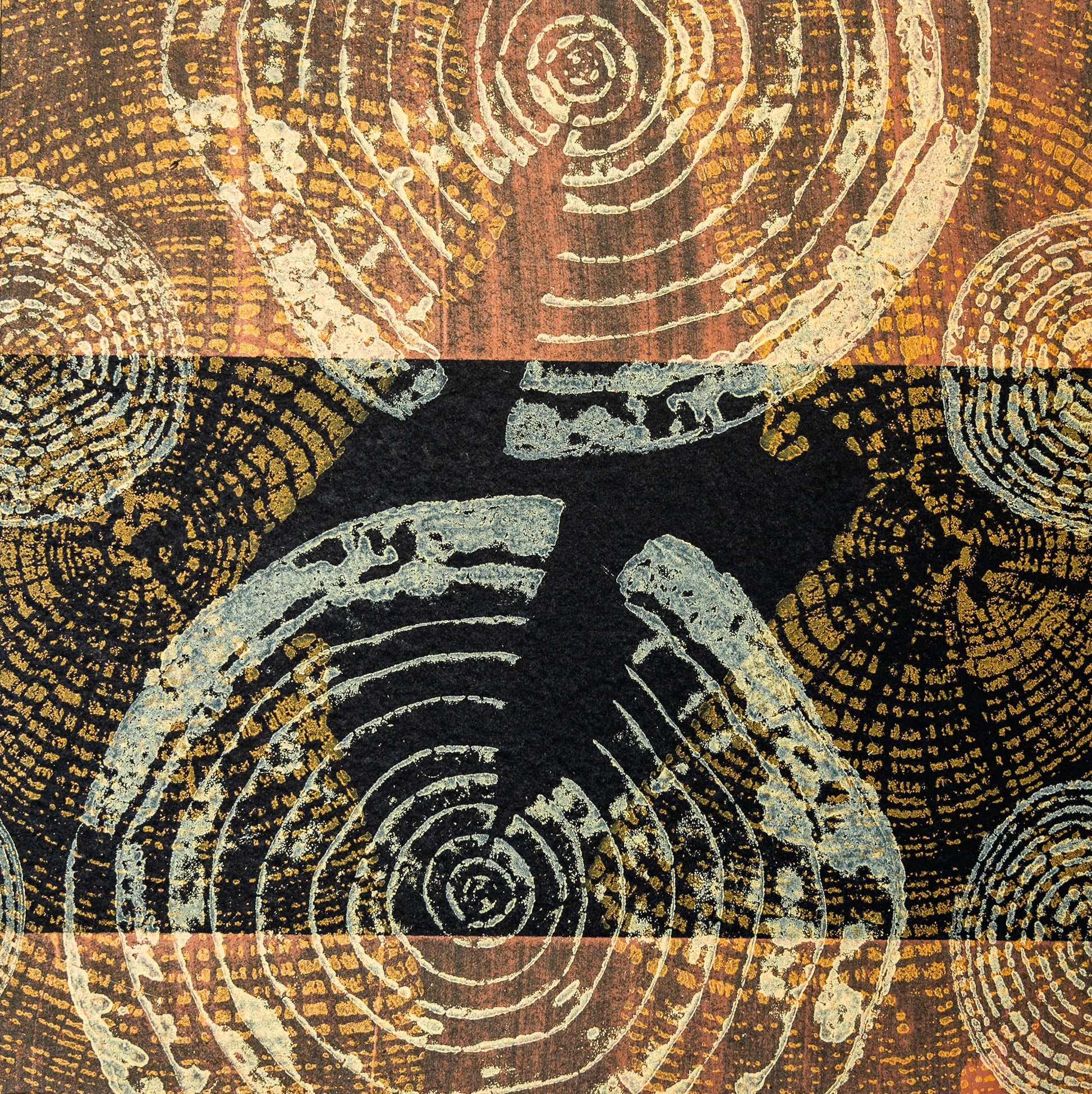 Each piece in the Summer Series is a one-of-a-kind original monoprint, hand printed from the cross-section of downed trees. These works repurpose the natural imagery of tree rings into layered abstract compositions, merging traditional printmaking with contemporary design. Inspired by the Bauhaus art movement and folk art traditions, this collection celebrates color, form, and the enduring beauty found in nature’s patterns.